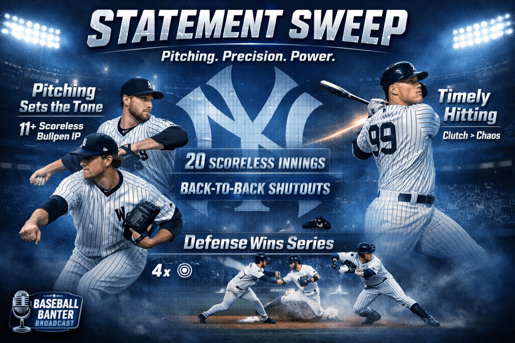 For a team long defined by offensive production, the nature of these wins stood out. The Yankees did not rely on explosive scoring or late-game rallies. Instead, they controlled the series through consistent, disciplined pitching that limited opportunities and dictated the pace of play from the outset.