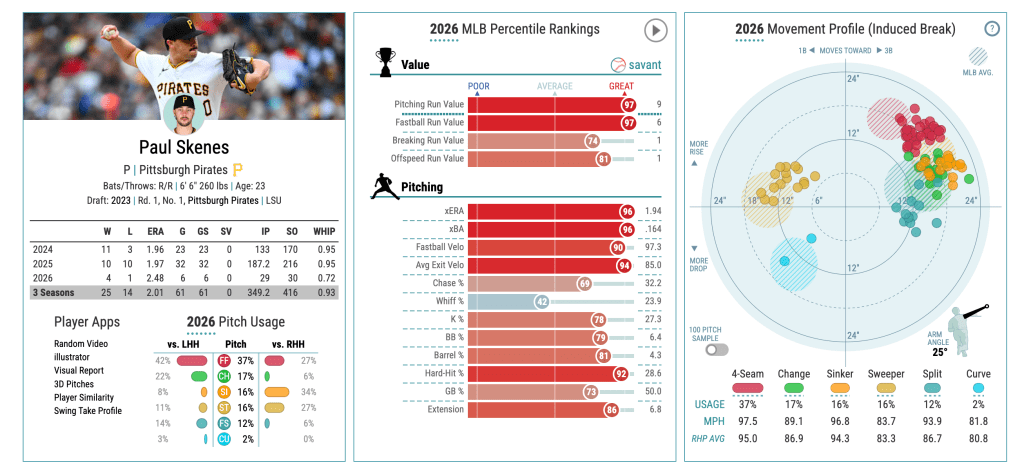 There was originally a different direction that we were going to go with the power tool by using prolific power hitter Marcell Ozuna. However, when you think about power on the Pittsburgh Pirates there’s very little question that there are few arms powerful enough to dominate like that of Paul Skenes. And while it may not exactly be the first thought of how you’d define the “power tool” there’s little debate against Skenes for this particular skillset if you widen the parameters of your mind on the tool.