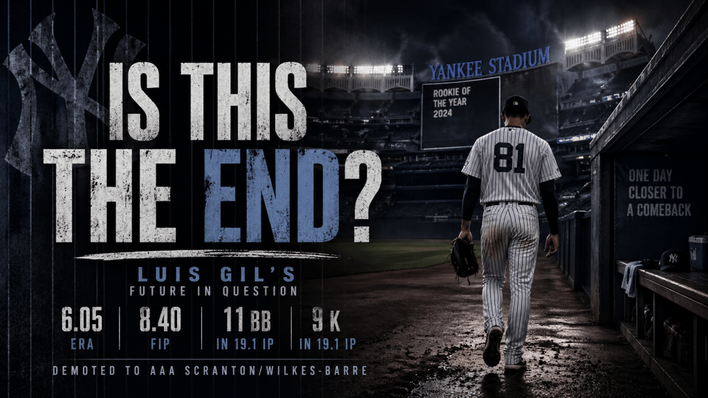 While watching the Yankees lose to the Houston Astros on Sunday, I made a bold pronouncement around the seventh inning. I posted in a Facebook group that Luis Gil should be sent down to AAA, since the Yankees have a day off on Thursday and Carlos Rodon was returning soon (I also noted that it freed up a spot for a hitter to help with the Giancarlo Stanton injury). Well, it looks like Brian Cashman read my comment, because soon after the game ended, Gil was on a plane to Scranton. Given this major move, it’s time to think about what this means for Gil’s time in pinstripes and ask, like New Edition did, “Is this the end?”